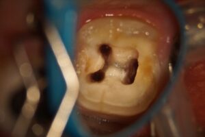根っこに開いた穴のリペアを含む顕微鏡根管治療例|49歳男性
